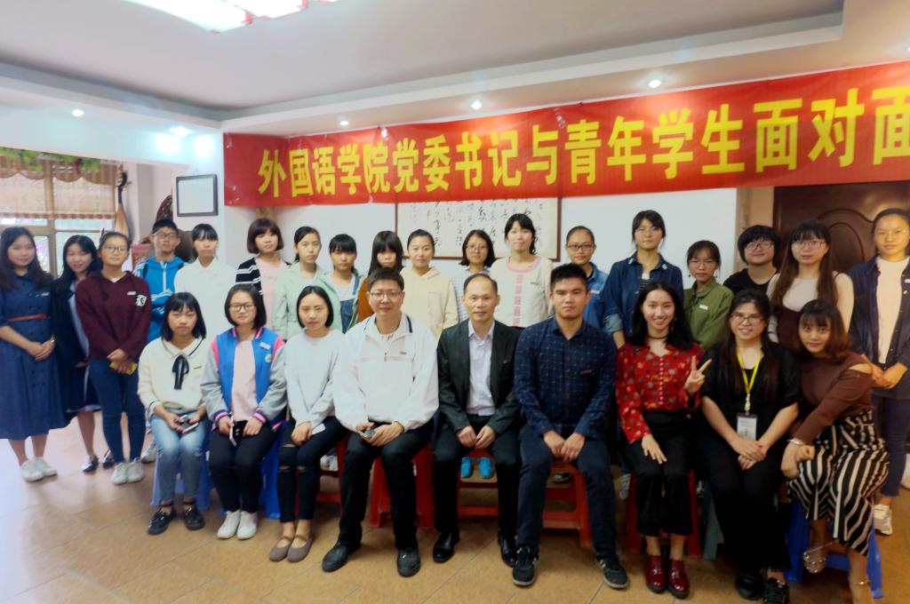 11月5日早上,外国语学院举办了“与书记有约”活动。外国语学院党委书记黄伟东副研究员、庄志强老师、辅导员梁燕辉老师以及二十名学我院学生代表进行面对面交流。
