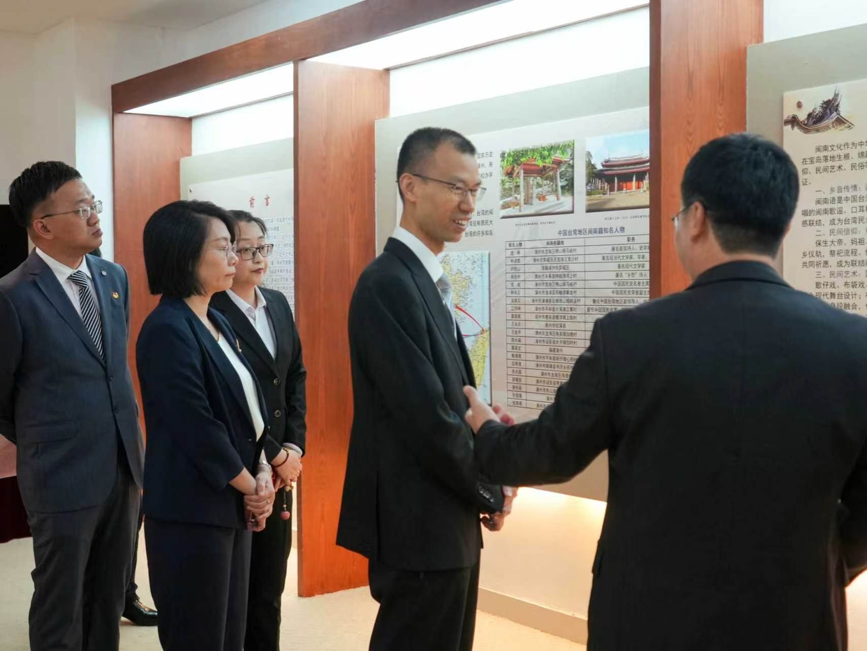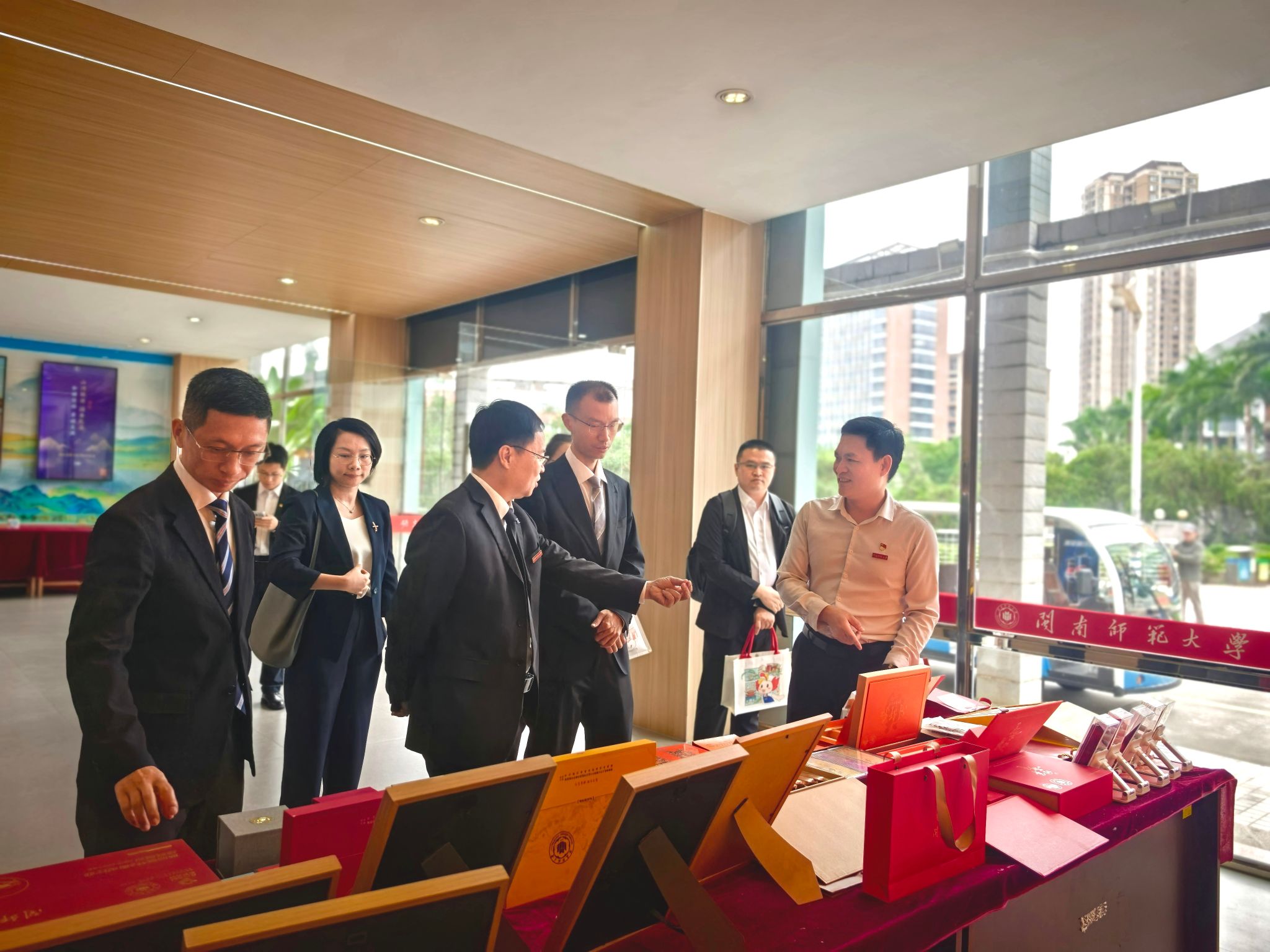 会后,校党委副书记林致远陪同周睿一行参观了闽南文化办学特色展及生物科学与技术学院科创精品展厅。在闽南文化展厅,来宾们详细了解了我校深耕闽南文化、服务两岸交流的办学成果;在生科院科创展厅,大家对学生们自主研发的创新成果和创业项目表现出浓厚兴趣,并就校地共建、科技成果转化等话题进行了现场交流。